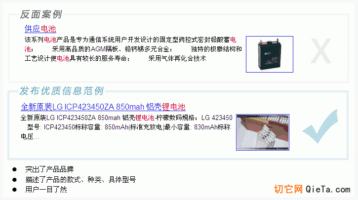 描述完全相同或基本相同的產品信息,只允許發布1條信息,如發布了2條以上(含2條),則可判定為重復信息,并將受到切它網的相關處罰。